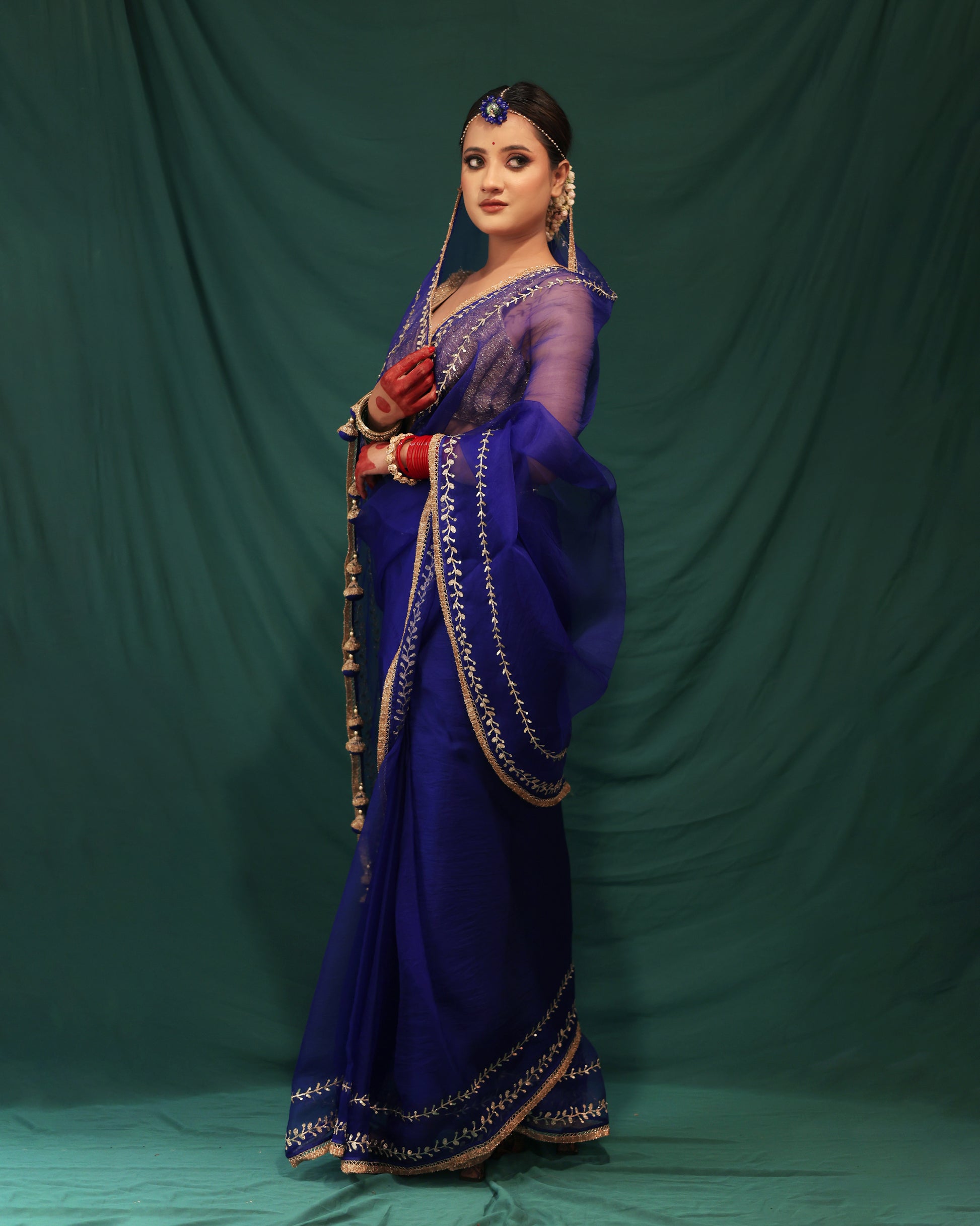 ROYAL BLUE ORGANZA SAREE - JHAROKHA