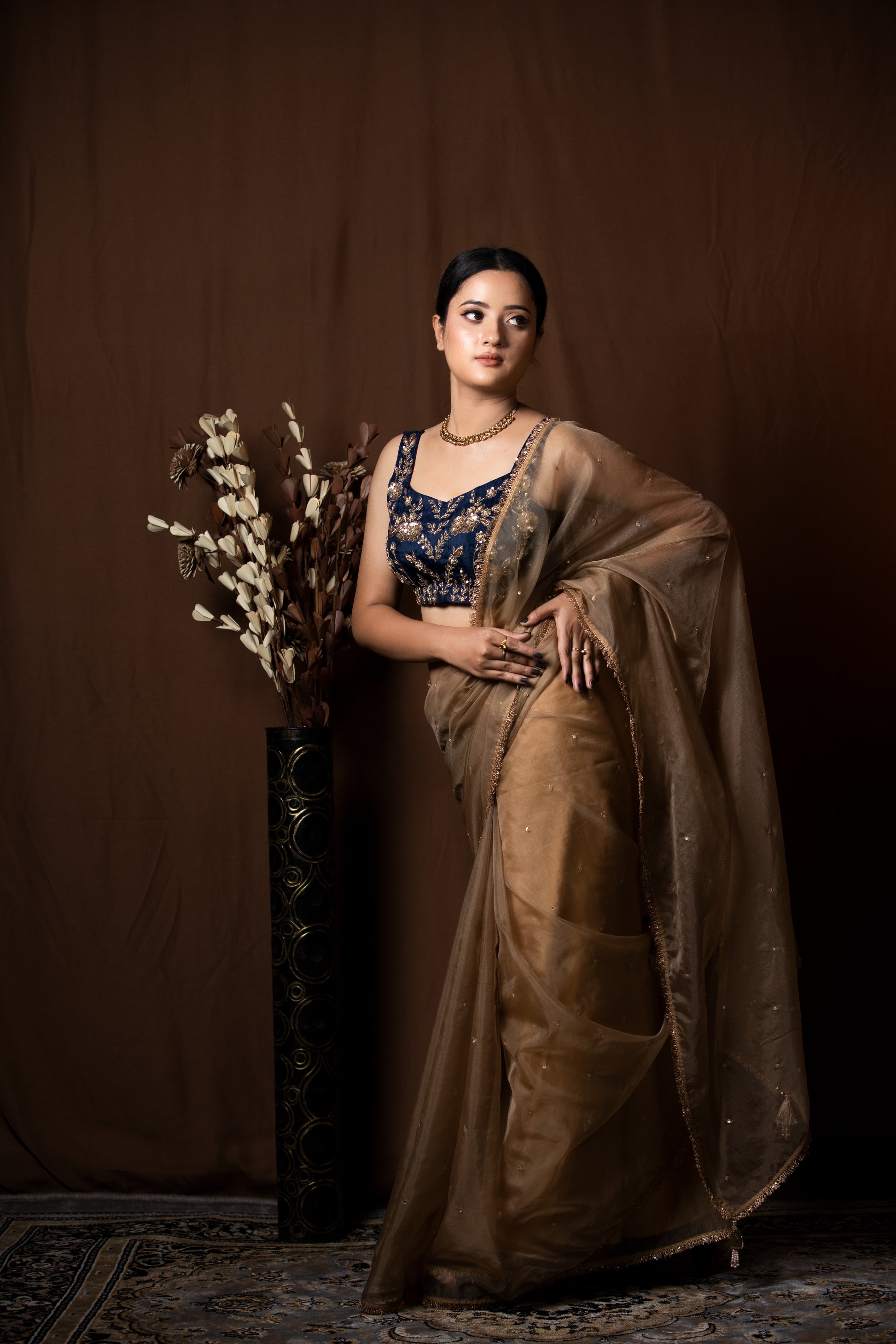BROWN ORGANZA SAREE - KUMUD