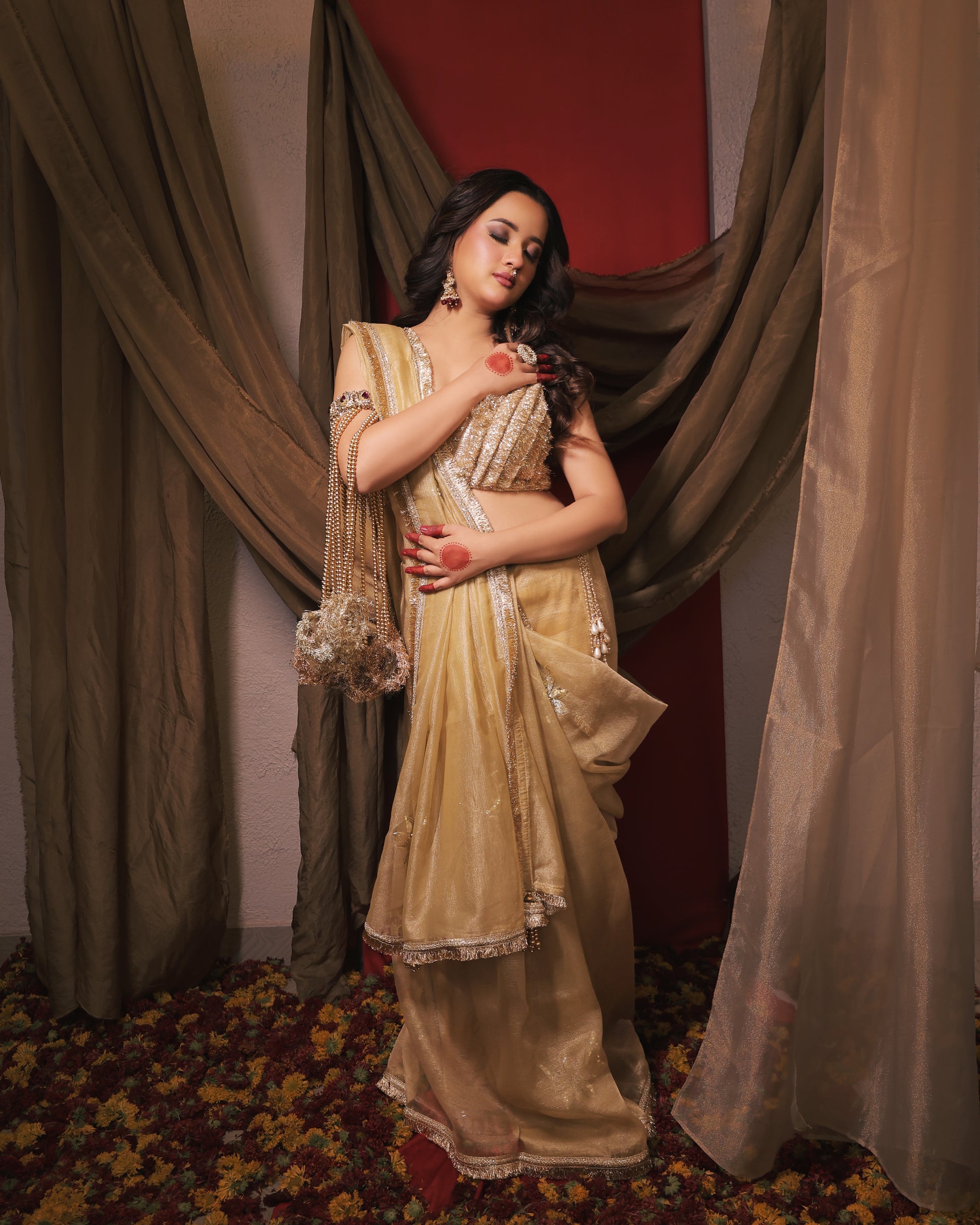 • Festive Radiance: Golden monochrome for a luminous, auspicious look