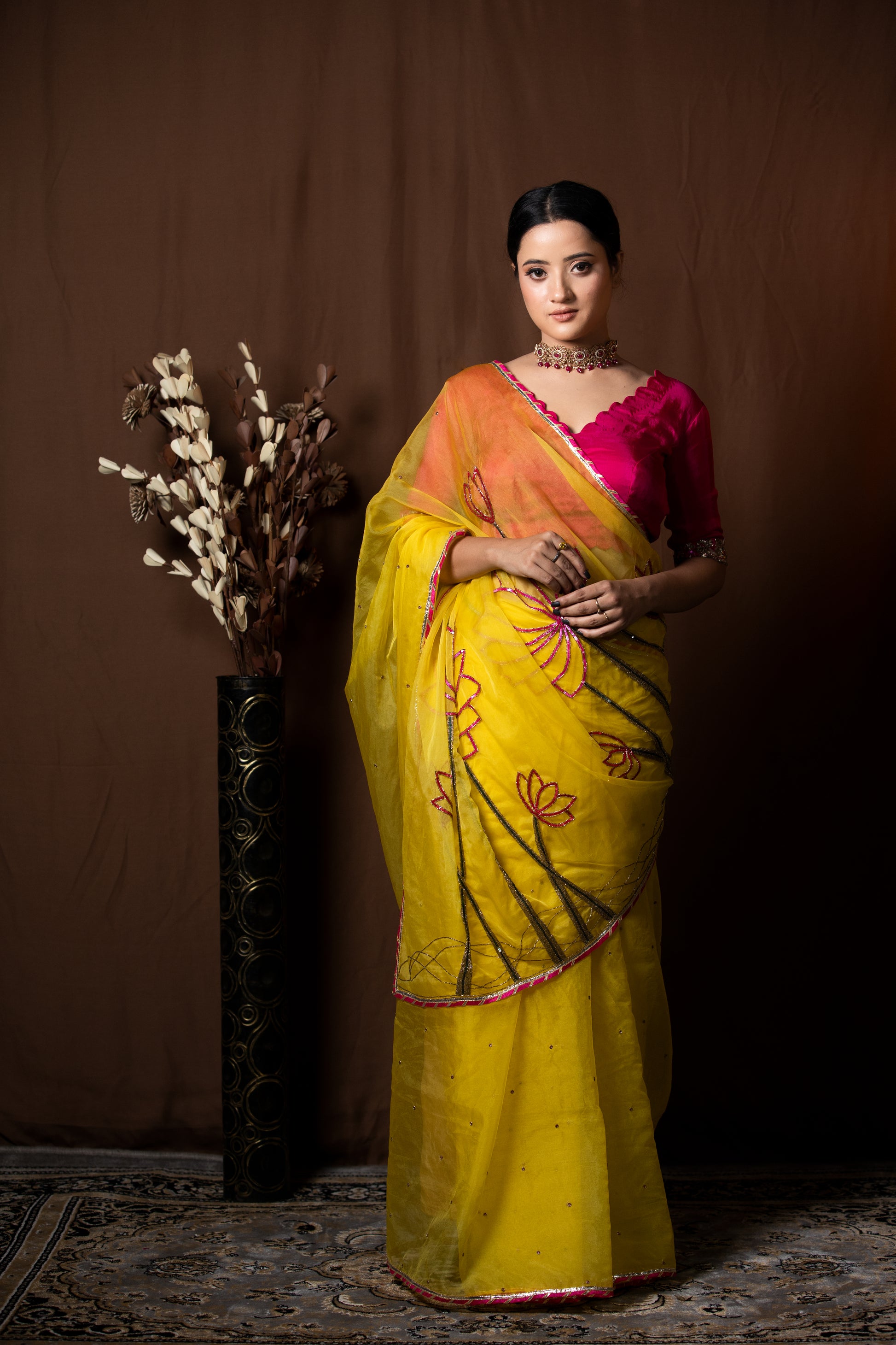 TURMERIC YELLOW ORGANZA SAREE - KUMUD